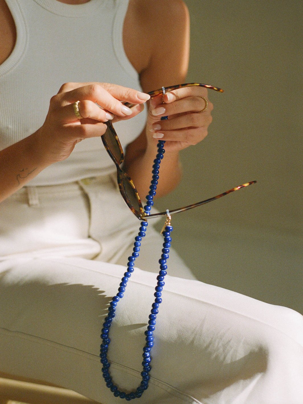 We are so excited to launch the earthy Ceramico Collection by Coco Bonito. This collection consists of beautiful handrolled beads made out of ceramic clay. These timeless classy designs can go with any kind of (sun)glasses in any season. These chains from Coco Bonito are available in four beautiful earthy tones: cobalt blue, ivory white, forest green and musket brown.